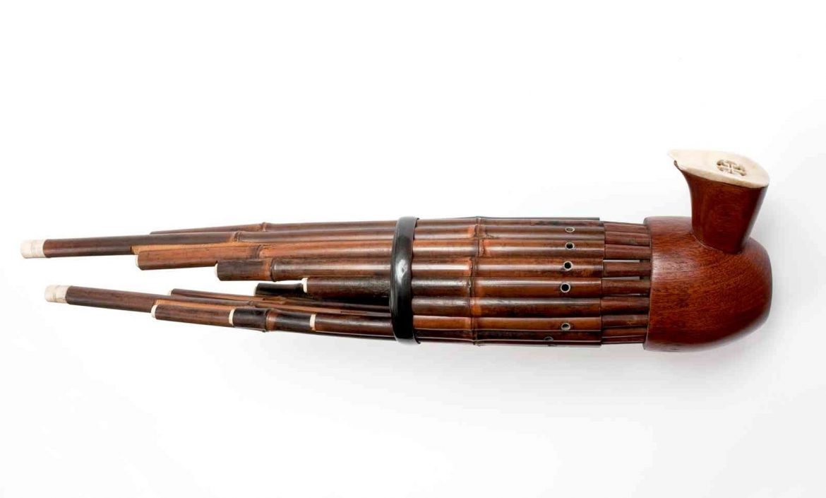 Anche lo sho, come la maggior parte degli strumenti della tradizione giapponese, proviene dalla Cina, dove troviamo il suo antenato, lo sheng. Si tratta di un organo a bocca, ad ance libere, fatto di una cassa in legno laccato che funge da serbatoio dell’aria, nella quale vengono infilate 17 canne