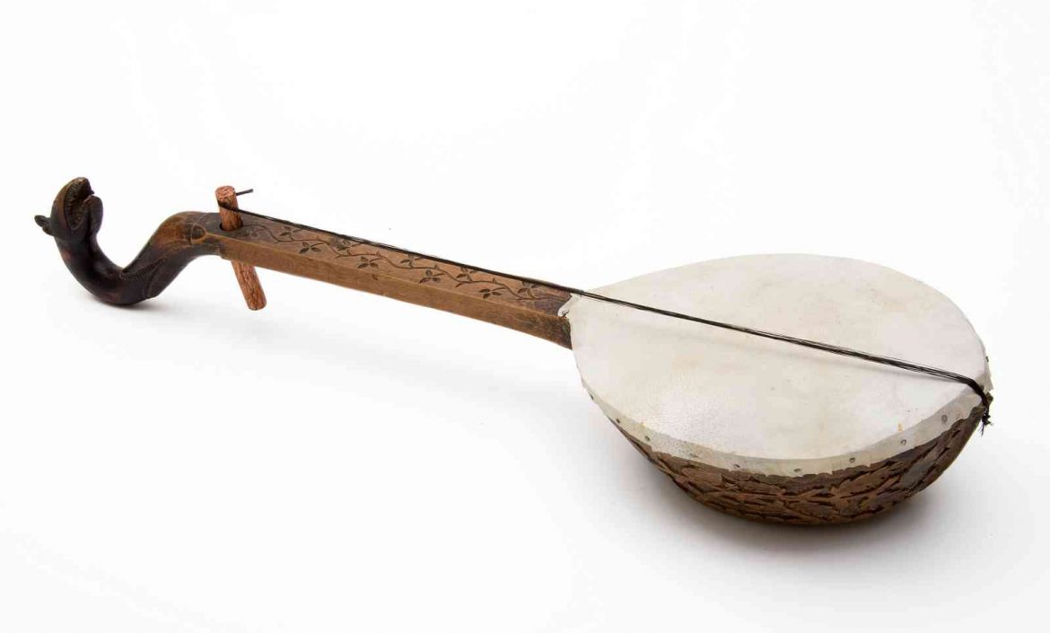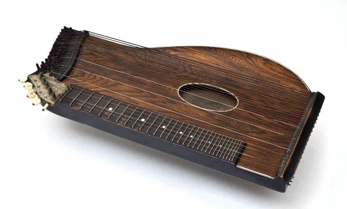 Appartenente alla famiglia delle cetre lunghe, presenta tavola armonica arcuata e fondo piatto, che simboleggiano